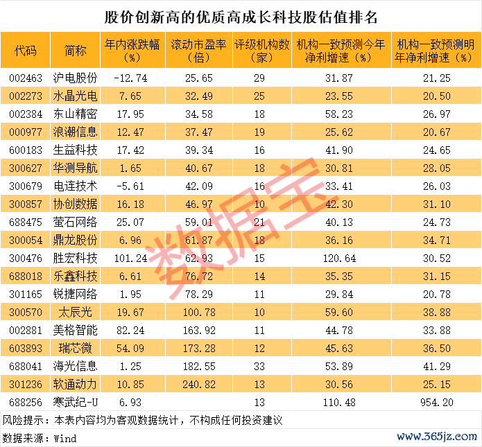 创历史新高的优质高成长科技股曝光,19股上榜
